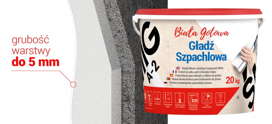 Do metody nakładania wałkiem zaleca się głównie gładzie dyspersyjne, czyli sprzedawane w formie gotowej zaprawy w plastikowych wiadrach. Głównie ze względu na to, że w przypadku gładzi gipsowych jest ryzyko, że gładź zwiąże nam na wałku, co uniemożliwi jego dokładne umycie. Polecamy nakładać wałkiem gładzie dyspersyjne z oferty marki ŚMIG. Znajduje się tu kilka gładzi gotowych, najpopularniejsza z nich to ŚMIG A-2. Gładź A-2 ma dość gęstą konsystencję, ale można do niej dolać wody w ilości uzależnionych od preferencji, warunków panujących w danym pomieszczeniu (wilgotności i temperatury) oraz założeń co do ostatecznej grubości warstwy gładzi na ścianie. Optymalne jest dolanie około 300 ml wody na wiadro zawierające 20 kg gładzi. W ofercie ŚMIG znajduje się także gładź A-8 Malarska, o rzadszej konsystencji i większej twardości. Gładź A-8 polecamy do cienkowarstwowego szpachlowania i obróbki mechanicznej.