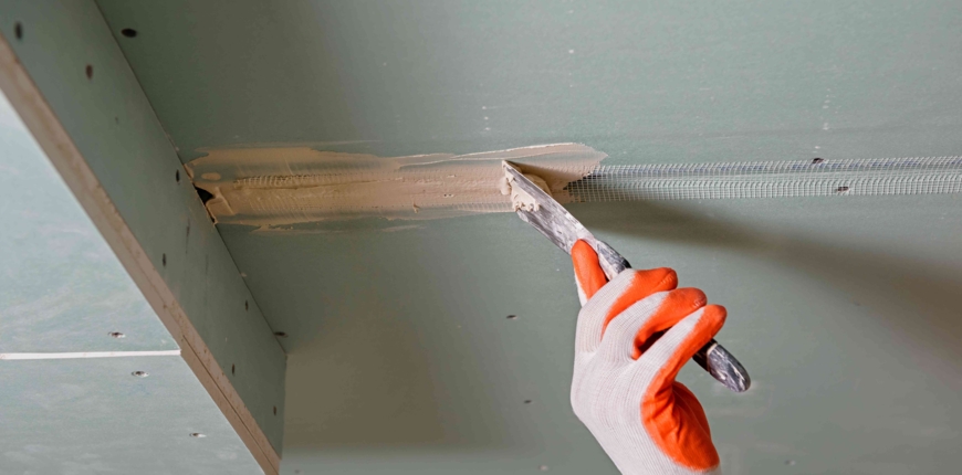 Niezbędną czynnością jest również połączenie ze sobą płyt. Szczeliny (maksymalnie 3 mm) między nimi oczyszczamy, gruntujemy, a następnie pokrywamy masą szpachlową do płyt g-k. Połączenia warto wzmocnić – służą do tego taśmy łączeniowe, siatki lub specjalny papier. Natomiast do spoinowania narożników najlepszy będzie akryl – oczywiście taki, który może współpracować z płytami gipsowo-kartonowymi.