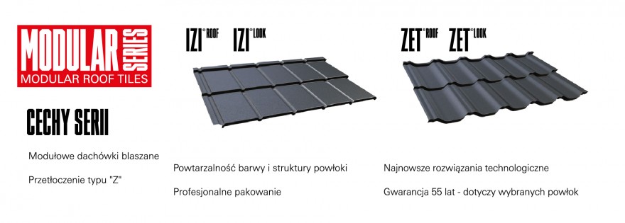Linia najnowocześniejszych modułowych pokryć dachowych, wyposażonych w innowacyjne rozwiązania technologiczne i perfekcyjne dopracowanie pod kątem estetyki. Dachówki produkowane są w formie niewielkich dwumodułowych arkuszy, które w znacznym stopniu ułatwiają i przyśpieszają transport oraz montaż.