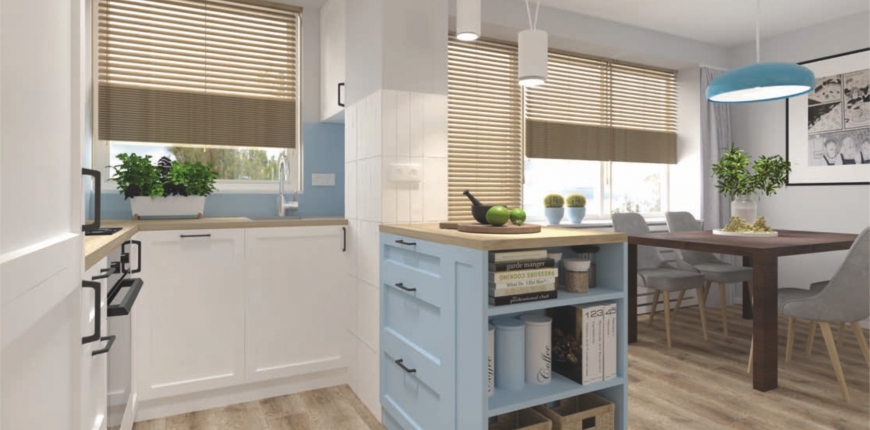 • Dzięki połączeniu kuchni z pokojem można było zlikwidować grzejnik w kuchni.