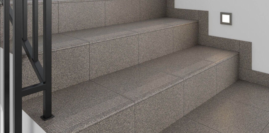 Zarówno w przypadku układania płytek na schodach zewnętrznych i wewnętrznych powinny one mieć powierzchnię antypoślizgową, co wpływa na zwiększone bezpieczeństwo. Najlepiej sięgnąć po kolekcje płytek schodowych, w których są stopnice z ryflowanymi brzegami. Dla wygody poruszania się, a także estetyki wykończenia można też kupić stopnice z fabrycznym wyprowadzeniem do podstopnicy, które pozwalają uniknąć fug widocznych na krawędzi stopnicy i podstopnicy i ułatwiają równe ułożenie płytek.